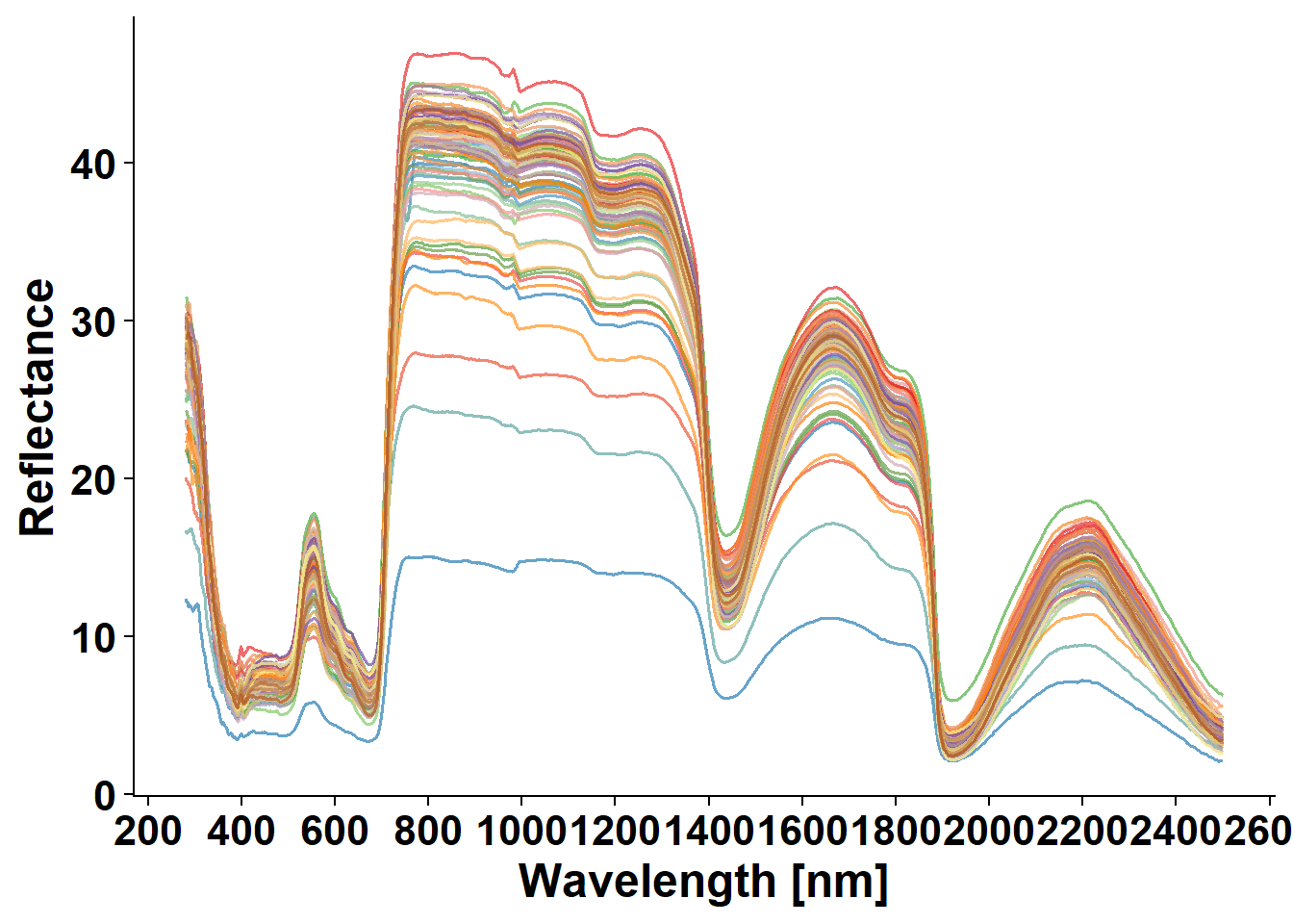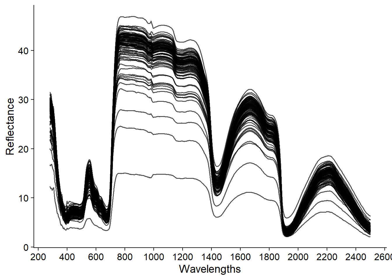 colnames(spec) <- c("Wavelengths","Reflectance")