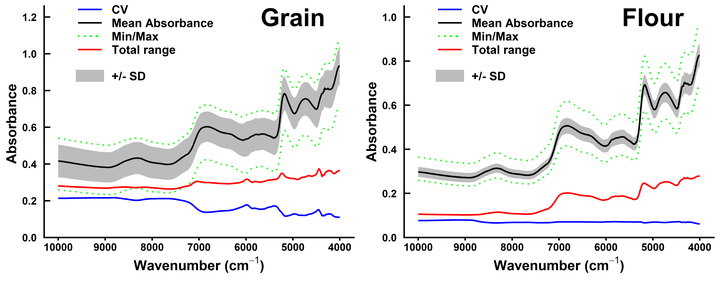 Near-infrared spectroscopy (NIR) is a non-destructive, fast, and low-cost method to measure the grain quality of different cereals. However, the feasibility for determining the critical biochemicals, related to the classifications for food, feed, and fuel products are not adequately investigated. Fourier-transform (FT) NIR was applied in this study to determine the eight biochemicals in four types of sorghum samples: hulled grain flours, hull-less grain flours, whole grains, and grain flours. A total of 20 hybrids of sorghum grains were selected from the two locations in China. Followed by FT-NIR spectral and wet-chemically measured biochemical data, partial least squares regression (PLSR) was used to construct the prediction models. The results showed that sorghum grain morphology and sample format affected the prediction of biochemicals. Using NIR data of grain flours generally improved the prediction compared with the use of NIR data of whole grains. In addition, using the spectra of whole grains enabled comparable predictions, which are recommended when a non-destructive and rapid analysis is required. Compared with the hulled grain flours, hull-less grain flours allowed for improved predictions for tannin, cellulose, and hemicellulose using NIR data. This study aimed to provide a reference for the evaluation of sorghum grain biochemicals for food, feed, and fuel without destruction and complex chemical analysis.